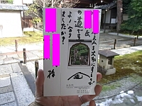 大徳寺の塔頭であります、大仙院に到着!枯山水のお庭が方丈を一周しているという、めちゃステキなお寺でした! 普通、枯山水のお庭には水はないのですが、前日降った雪が溶けて、枯山水の石のくぼみに水が溜まってました。 住職さんの話しによると、この石を見て、千利休がつくばいを考案したんだとか!この石がつくばいの原型となったとのこと! 幸運にも、水が溜まる元祖つくばいが見れてよかったです!あと、国宝の方丈!豊臣秀吉や千利休が歩いた廊下を私も歩いてる…なんかスゲー、めちゃ身震い! あと、本日は開祖さんの月命日という事で、特別に普段公開されてないお部屋に案内されました!このお部屋、沢庵和尚が住んでいた部屋とのこと! 宮本武蔵も沢庵和尚を訪ねてこの部屋に来たんだとか!なんか、スゲー、めちゃ身震い!そんなこんなで拝観後、ポストカードを購入。 すると、先代の住職さんがサインを書いてくれました。そして『あんた、ちょっと怪しいから』と言われ、メッセージまで書いてくれました! 怪しいって…笑えます!先代の住職さんは、20年前、全国ネットのお昼のワイドショーでご意見番として出演していた人らしいです。 現在、たくさんの本も出版しているらしい。なんか知らんけど、規格外に明るいお坊さんでした!ちなみに建物内は撮影不可とのこと。
