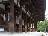 本日のメインイベントであります、唐招提寺! 思えば以前、唐招提寺に行こうとチャレンジしかけましたが、金堂が修復工事中だという事を知り、あえなく断念しました。 なもんで、修復工事が終わったら即効で唐招提寺に行くぞ!と、きばってはみたものの無常にも月日は流れ。 唐招提寺に行きたい、唐招提寺に行きたい、と口癖のようにつぶやく毎日でありました。 修復工事が終わったのが2009年11月。 そんなこんなで、1年4ヶ月間の想いが叶い、本日とうとう唐招提寺にやって来る事ができました! そして、864体の化仏を背負った盧舎那仏さんと953本の手が飛び出している千手観音さんに会ってきました! まずは盧舎那仏さん。光背を含めると5メートル超えするという巨大さ! まばたきをすると損。そう思えてしまうくらいずっと見ていたい。 と思ってはみたももの、左隣りに立っている千手観音さんの手がピョンピョンと視界に入ってくる。 盧舎那仏さんをじっくり観ていたいとこですが、どうしても千手観音さんの手が視界に入ってくる。 そんなこんなで、盧舎那仏さんはまた後に観るとして、千手観音さんの前へ移動。 これまた5メートル超えの巨像!まるで花びらのごとく咲き乱れる手! 手に汗にぎるぜ。圧巻です。絶句です。 金堂内には盧舎那仏さんと千手観音さん以外にも、国宝の仏像さんが8体いらっしゃるのですが、盧舎那仏さんと千手観音さんばっかり観てました。えへ。 その後、講堂で仏像さんを見て、新宝蔵という名の宝物館に行ってきました。そこにもたくさんの仏像さんが安置されていたのですが、 私の心を鷲づかみにしたのは、やはり天平の鴟尾!こんなにも近くで拝見できるとは……興奮です。尾に汗はさむぜ。 その後、鑑真和上の墓所へ行き、戒壇を拝見し、そしてまた盧舎那仏さんと千手観音さんに会いに行きました! もう時間を忘れてしまうくらい見入ってました。いや時間を忘れてました! 気がつけば、拝観終了時間の17時にっ!ノン気に金堂の扉が閉じる瞬間を写真に収めてる場合じゃない! 見渡せば、境内には誰もいやしない。そんなこんなで、お寺の人にせかされつつ勝手口のような小さい出入り口から退散する事になりました。 いやぁ~、それにしても楽しい1日だったなぁ。はぁ~、帰りたくないなぁ。 ん?、、、帰りたくないなら帰らなきゃいいじゃん。そうだ、もう1泊しよう! そんなこんなで、急遽宿探しをするのでありました!
