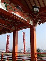 超個性派社殿が建つ、草戸稲荷神社に到着! その社殿は、とてもビル的でインパクトの特盛。 ビルというより、もはやロボットです。 そんなこんなで、ロボット化した社殿の階段を上り、屋上の本殿から福山市内を見下ろす。なかなかの絶景でした。 そう言えば、草戸稲荷神社に向かう途中、大量の小バエを引き連れて歩くお爺ちゃんに遭遇しました。 きっとあのお爺ちゃんは虫の神。